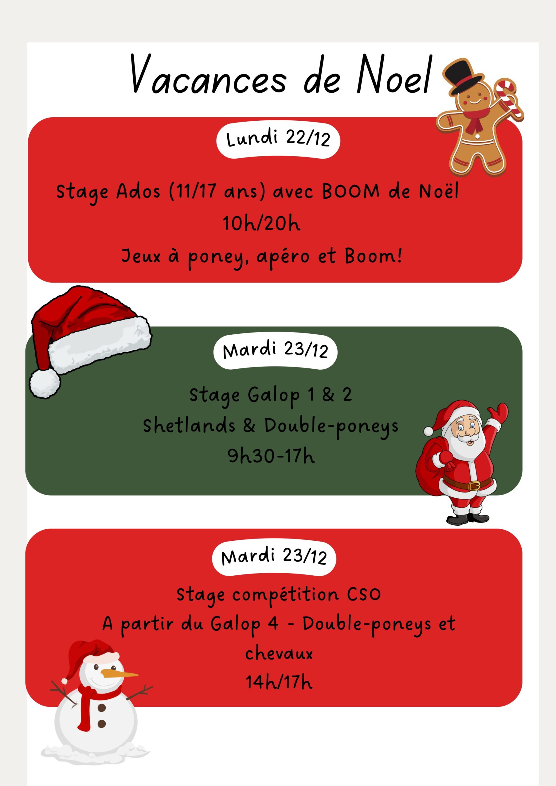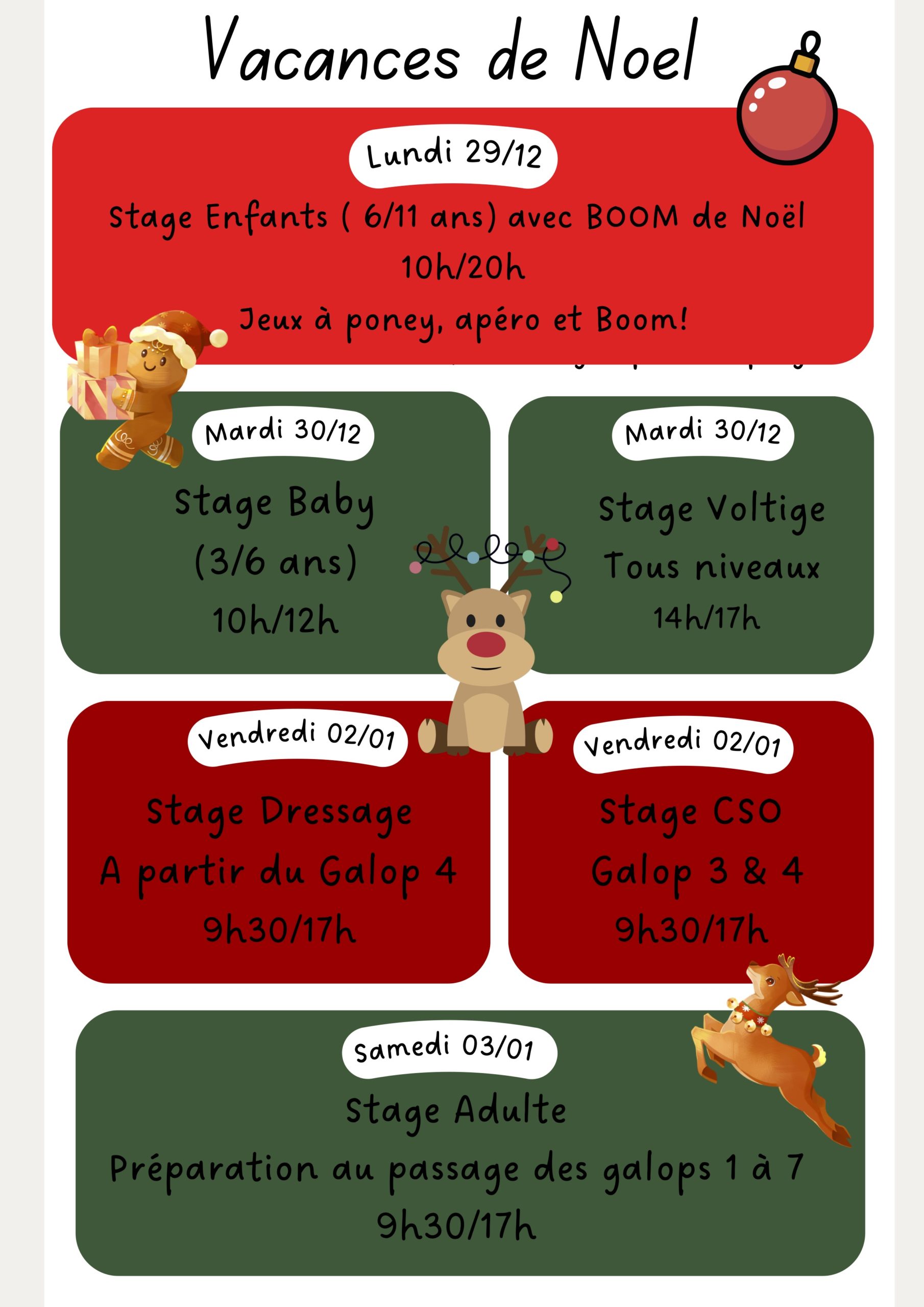 Découvrez le planning des vacances de Noël 2026 au centre équestre de La Gourmette :